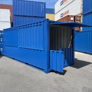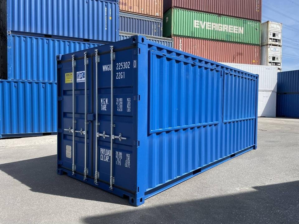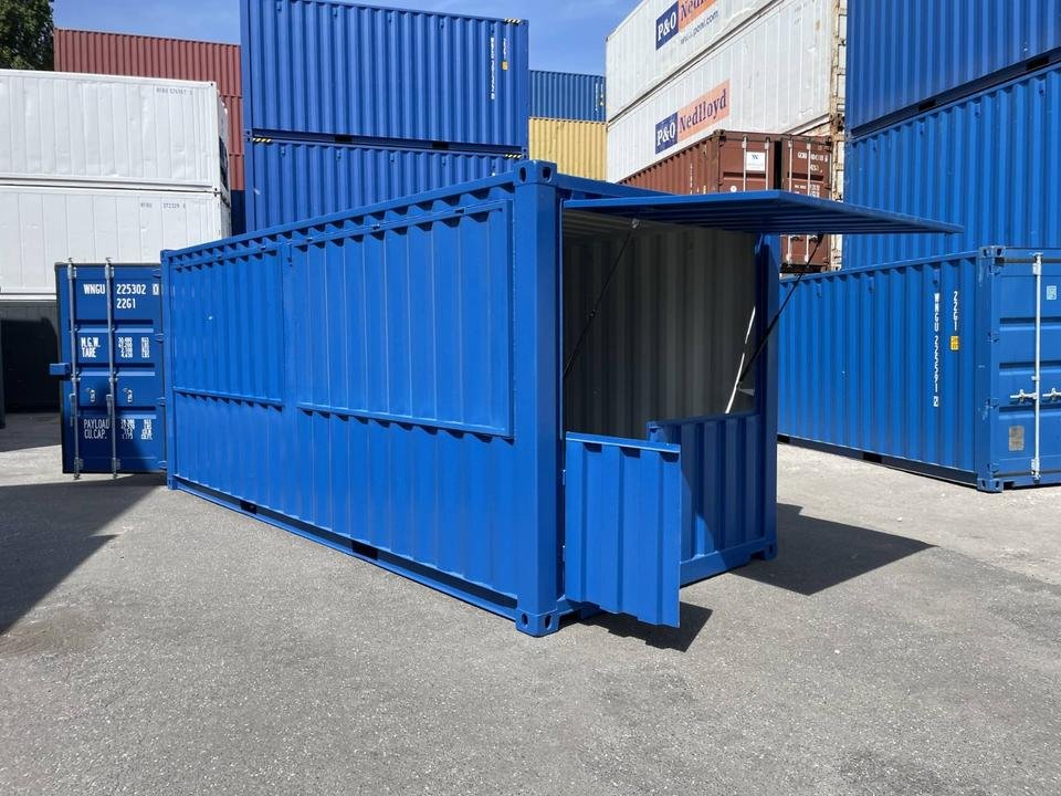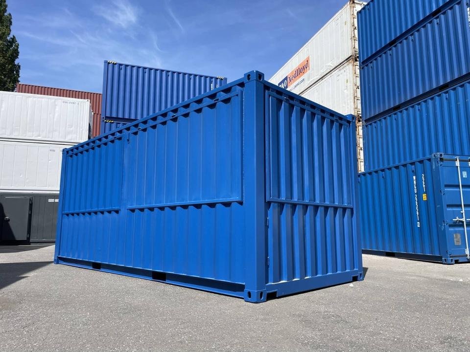 – Die Basis ist ein neuer, stabiler 20-Fuß-Seecontainer mit vier Türstangen und einer Sicherheitsbox, in enzianblau RAL5010