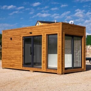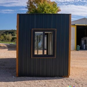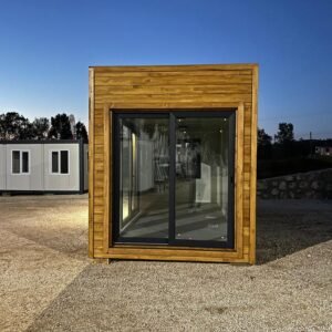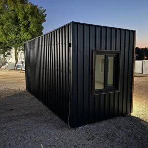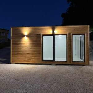 * Hochwertige Materialien für Langlebigkeit. Die Außenverkleidung aus robustem Holz oder Metall (je nach Designwahl) verleiht dem Moonlight ein zeitloses und elegantes Aussehen. Die hochwertige Isolierung sorgt dafür, dass der Bürocontainer das ganze Jahr über bequem genutzt werden kann, ob im Sommer oder im Winter. Alle verwendeten Materialien sind langlebig, pflegeleicht und auf Nachhaltigkeit ausgelegt.