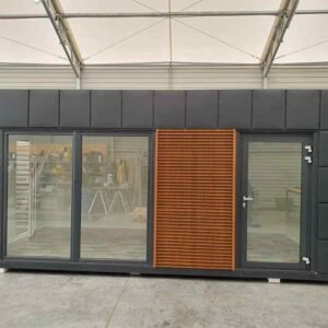 Dieser Bürocontainer in einer soliden Stahlrahmenkonstruktion bietet Stapelmöglichkeiten und ist robust konstruiert, um Langlebigkeit und Stabilität zu gewährleisten. Ideal für vielseitige Büroanwendungen.