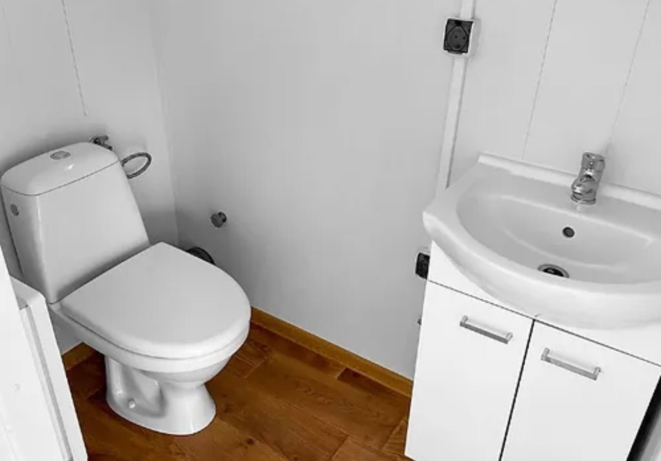 ✔️Trennwände: Holzkonstruktion mit Schalldämmung aus Wolle, verkleidet mit 12 mm OSB-Platten oder PVC-Paneelen