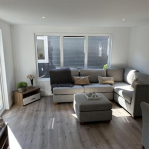 – Komplettes Badezimmer, u.a. mit elektrischem Design-Heizkörper, Fibo Trespo-Wandpaneelen, Dusche 1,20×0,80, Toilette und luxuriösen Badezimmermöbeln.
