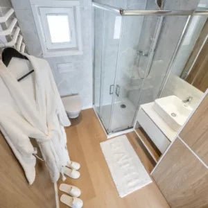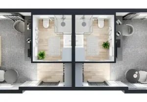 Ein Fertighaus mit Stahlkonstruktion, das auch als Mobilheim genutzt werden kann.