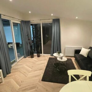 Tür- und Fensterrahmen aus Kunststoff, Doppelverglasung H++, Lüftungsgitter in den Fenstern.