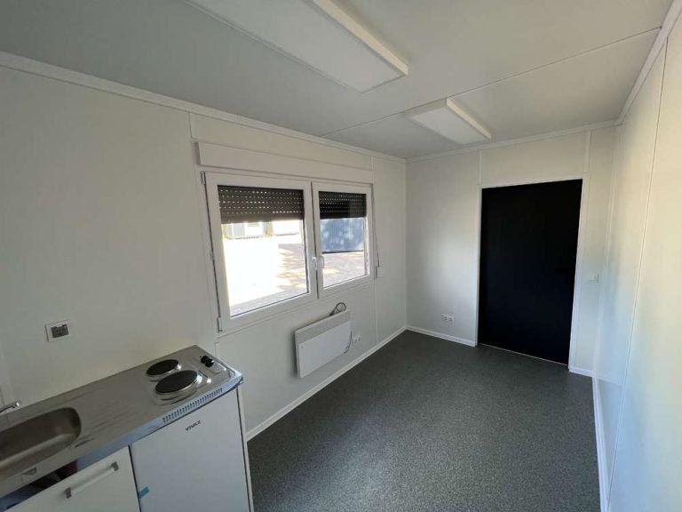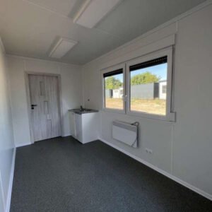 Professionell geschweißte Stahlkonstruktion aus hohlen, selbsttragenden, gewalzten Profilen (3 mm dick S235), grundiert und mit Polyurethan in RAL 7016 oder nach Kundenwunsch lackiert; Containerecken aus 8 Stück.