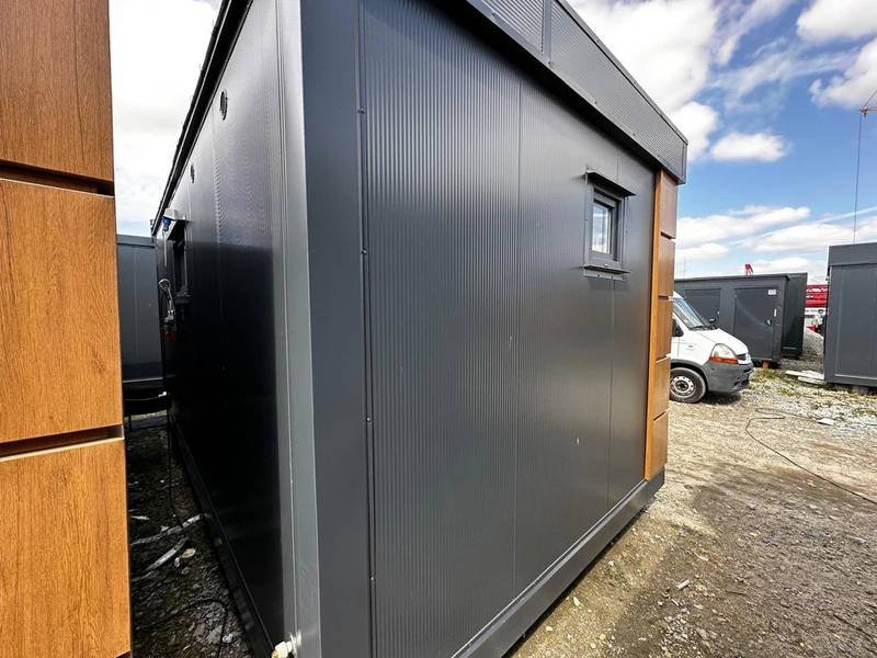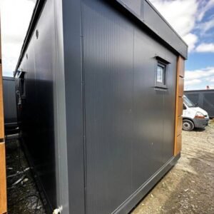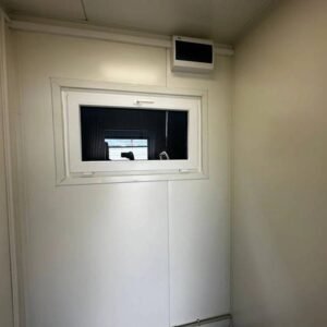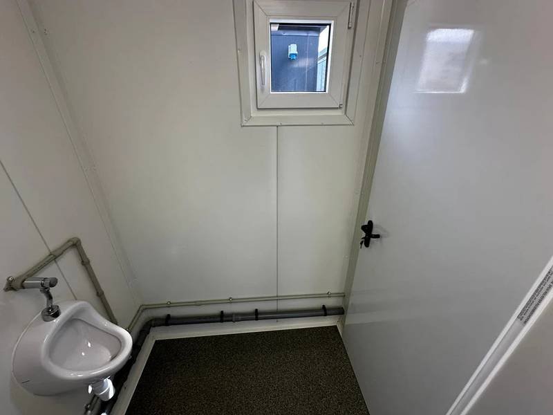 Das Modul ist ausgestattet mit4 Toiletten, 1 Urinal und 3 Waschbecken dies ermöglicht die gleichzeitige Nutzung durch mehrere Personen. Es hat eine Tür in der kurzen Wand und zwei Fenster mit Rollläden für gute Belüftung und Helligkeit. Die Elektroinstallation ist komplett und bietet mehrere zusätzliche Optionen wiedusche, Heizkessel und Klimaanlage (geteilt), um den Container an Ihre speziellen Bedürfnisse anzupassen.