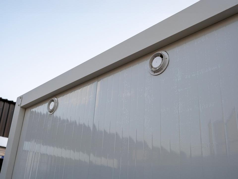 Isolierung: – Dach/Wand: 60 cm PUR (Polyurethan) – Optional: 10 cm Isolierung mit PUR, PIR oder Steinwolle erhältlich – Boden: 16 mm Faserzementplatten – PVC-Beschichtung