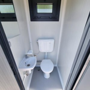 Unser Sanitärcontainer mit Doppelkabinen für Männer und Frauen ist die ideale Lösung für Baustellen, Outdoor-Events, Festivals und private Feiern. Mit seiner modernen Farbpalette RAL 7016 (Anthrazitgrau) fügt sich der Container perfekt in jede Umgebung ein und bietet eine funktionale und komfortable Lösung.