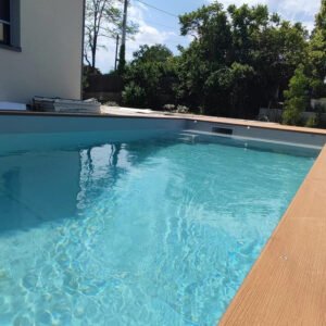 * Luminous Interior: Helle Schwimmbadfolie (hellblau oder hellgrau), die die Farbe des Wassers hervorhebt und ihm einen leuchtenden und einladenden Türkiston verleiht.