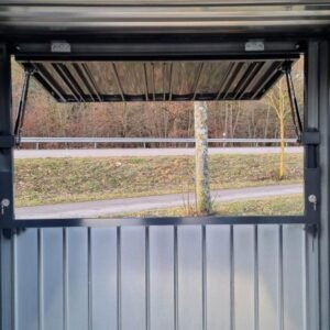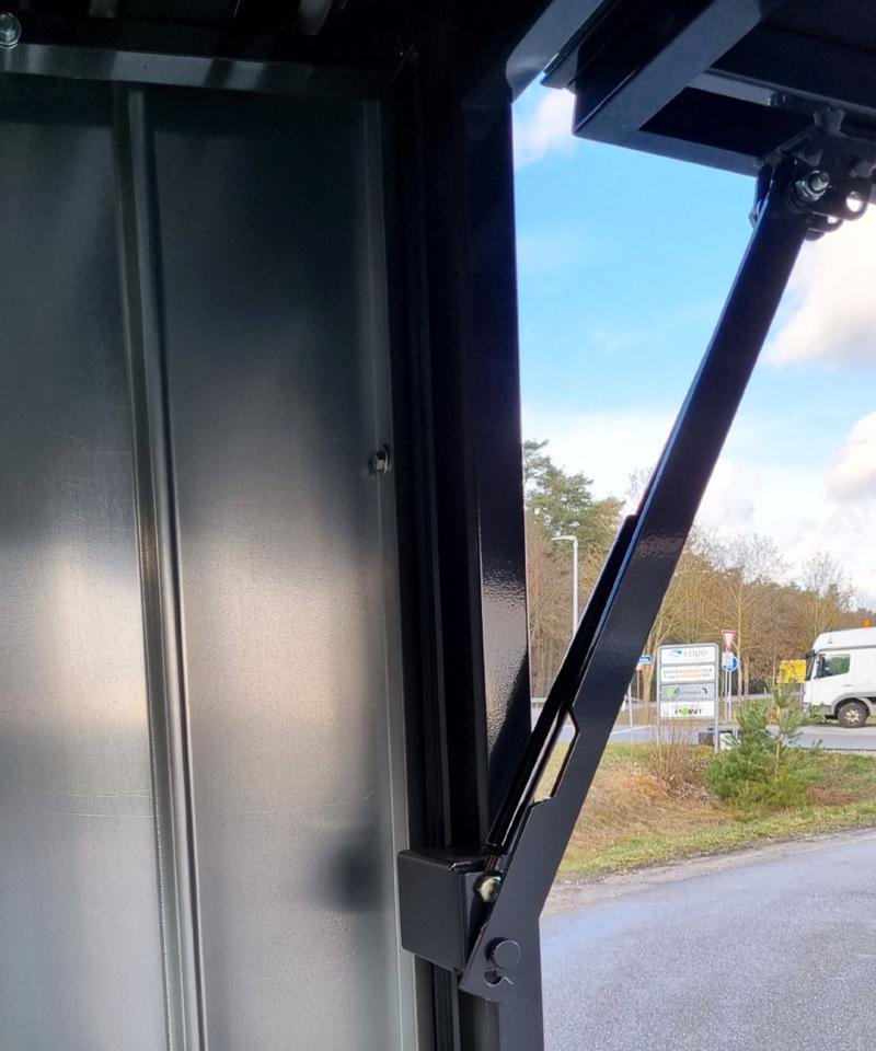 Die Tür des Barcontainers und die Verkaufsluke werden mit zwei Zylindern geschlossen.